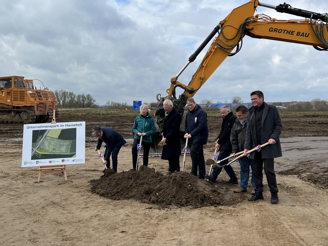 Am vergangenen Donnerstag fand der Spatenstich im Interkommunalen Gewerbegebiet bei Jahnshof statt, bei dem ich mit den anderen Mitwirkenden kräftig den Spaten geschwungen habe.