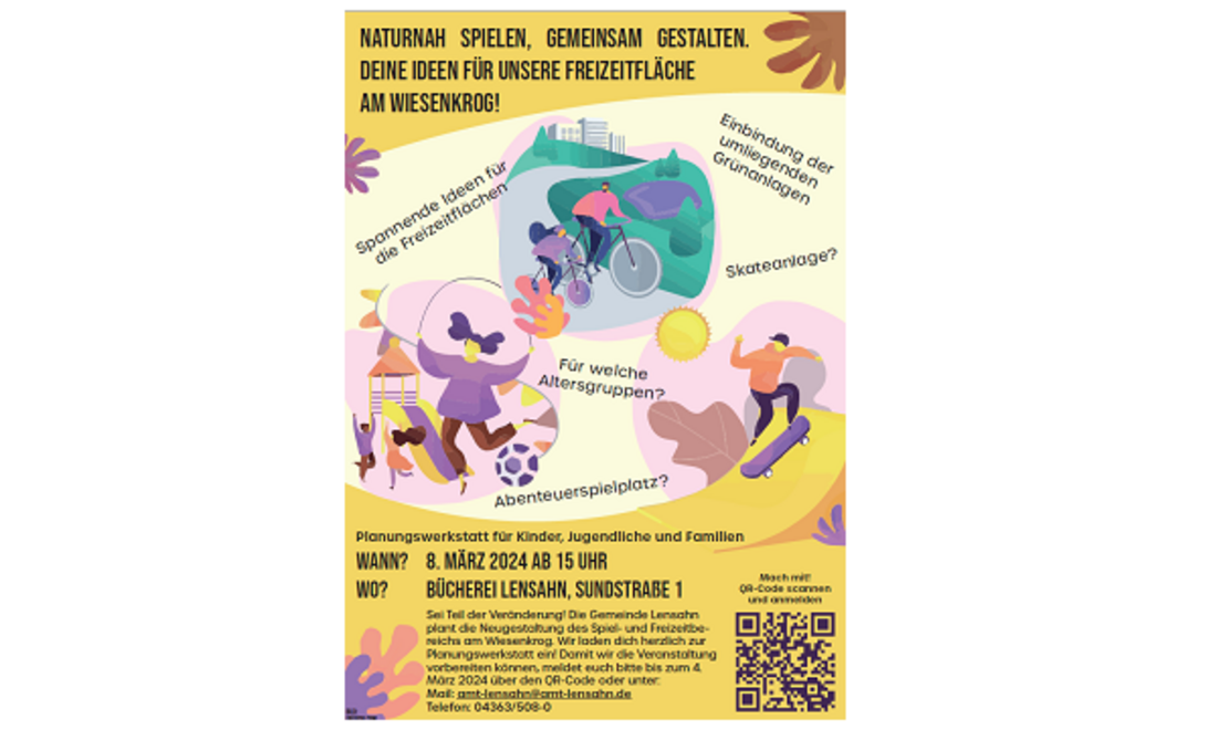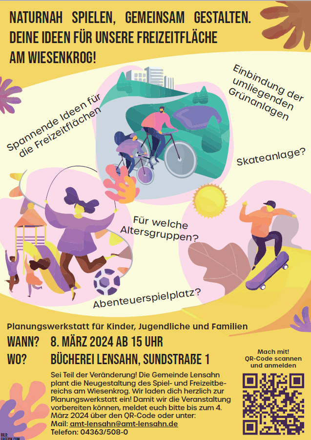 „Wir laden alle Interessierten herzlich ein, an der Planung für den neuen Spiel- und Freizeitbereich Wiesenkrog mitzuwirken!“ so Robien.